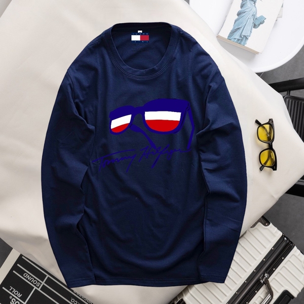 04 - Áo Thun Dài Tay Xuất Khẩu Màu Xanh Đen Phối Họa Tiết Mắt Kính