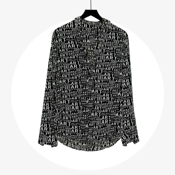 Áo Sơ Mi Đen Họa Tiết Chữ Cách Điệu