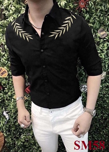 Áo Sơ Mi Đen Họa Tiết Lá SM58