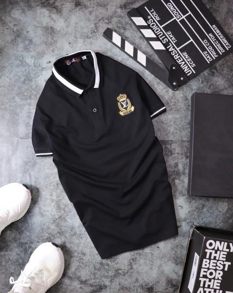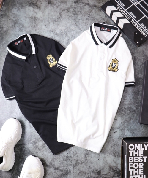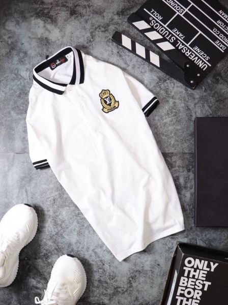 Áo Thun Cổ Trụ Phối Viền Logo Thêu