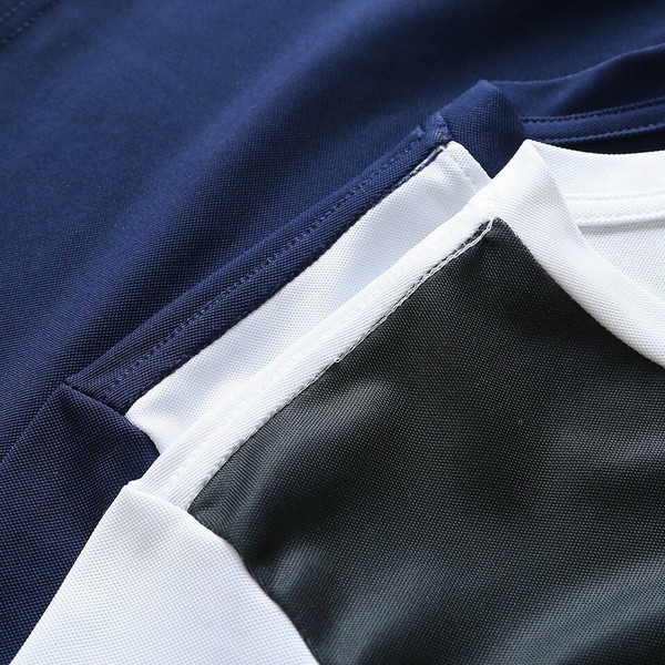✅ Áo thun cổ tròn với màu trắng và xanh đen chủ đạo được phối một cách hài hòa tạo nên thiết kế sang trọng và trẻ trung cho các chàng