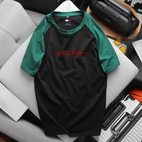 Áo Thun Tay Ngắn Ráp Lăng Xanh Đen Phối Xám