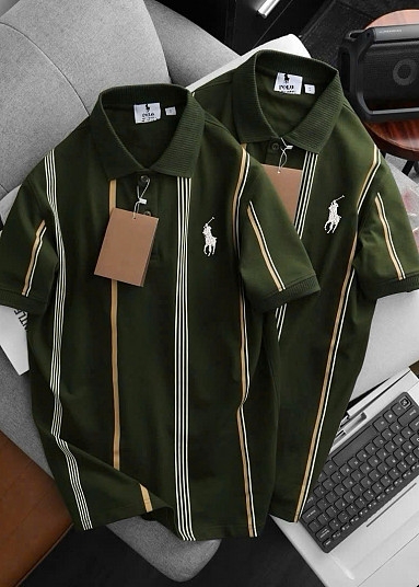 CS7969 - Áo Polo Nam Phối Màu Rêu Phối Sọc Dọc Tinh Tế