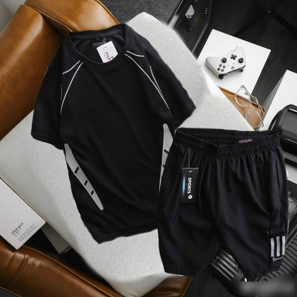 Set Áo Đen Phối Quần Short Đen Thể Thao
