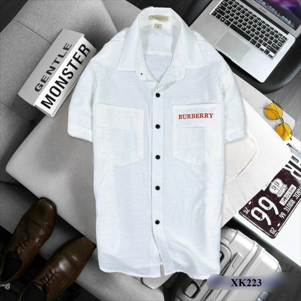 XK224 - Áo Sơ Mi Xuất Khẩu Tay Ngắn Phối Túi Màu Đen